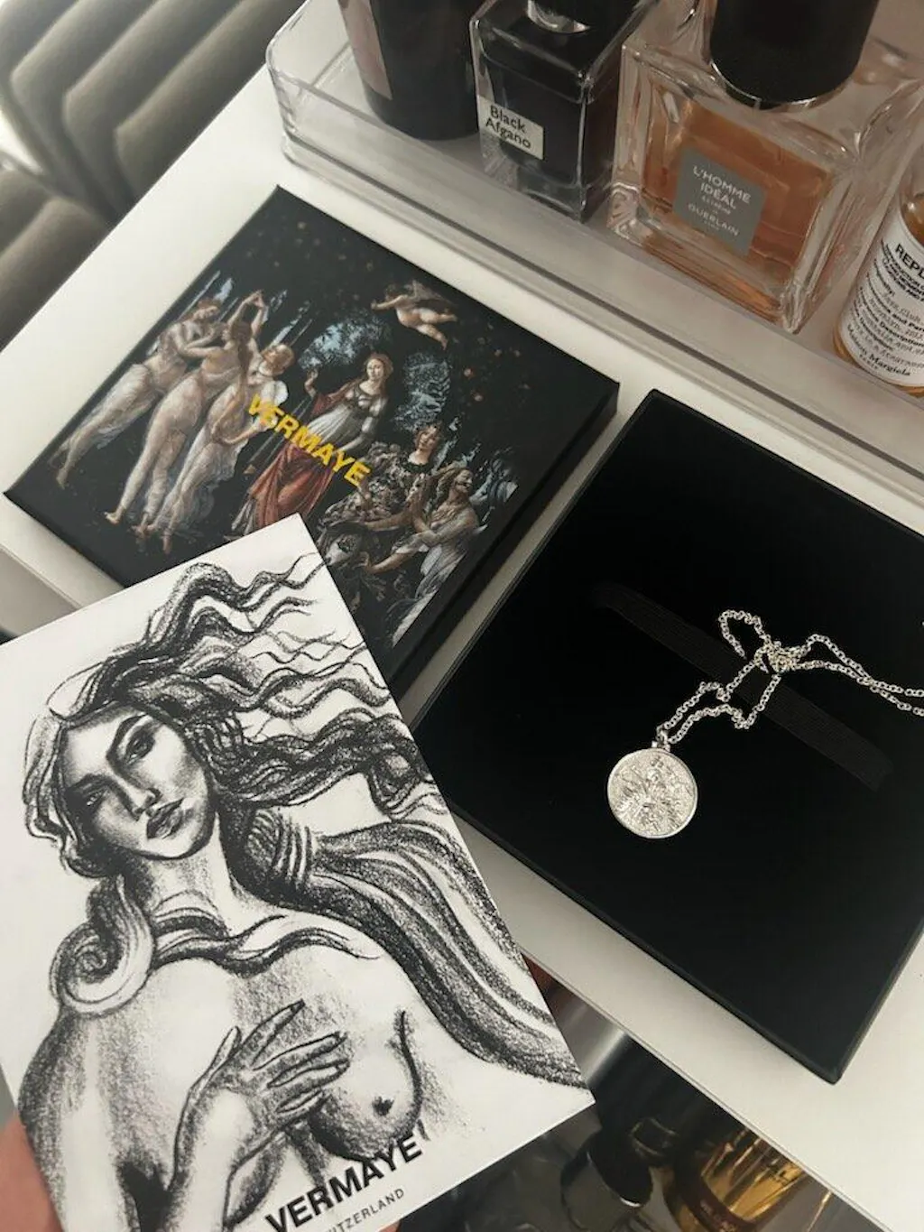 Su pedido de Vermaye se entregará en un lujoso embalaje con nuestro dibujo, un joyero y una bolsita. Empaquetado a mano con amor y perfecto como regalo.